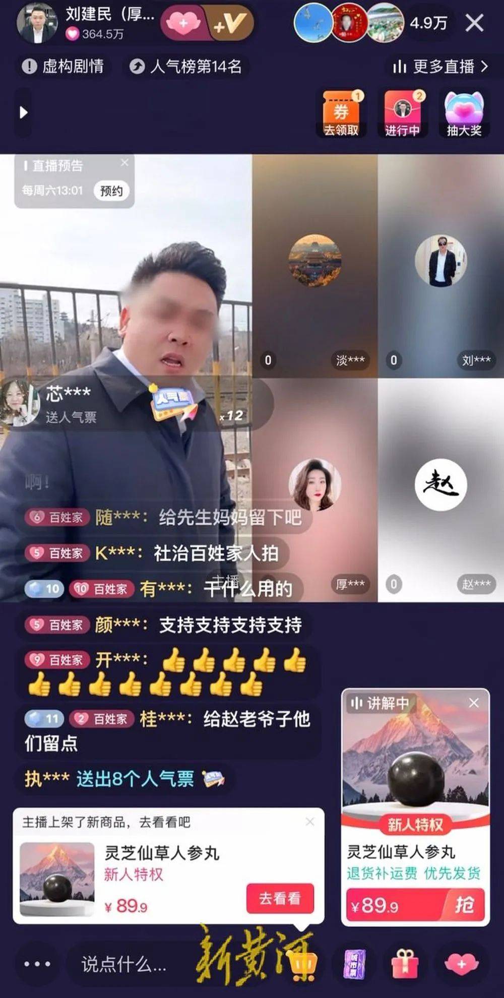 2月17日,为了争夺这件“富含灵芝人参的高端珍品”,一场“互撕”大战正在某短视频平台直播间内上演。账号名为“刘建民(厚德载物)”,坐拥205万余粉丝,上传的视频作品仅有13个,主题多是带着礼品慰问关怀农村老人。在其作品评论区,随机点开几名粉丝的资料,受众多为中老年群体,粉丝们则亲切地称他为“大P百姓家”的三儿子。