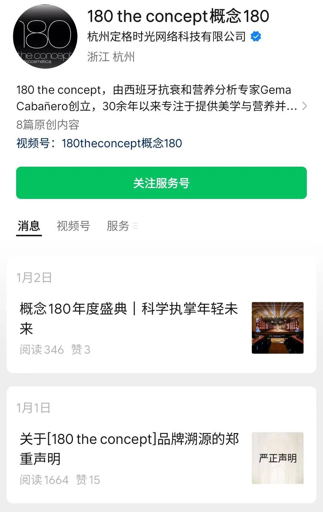 180theconcept概念180官方服务号及视频号显示,其运营关联方为杭州定格时光网络科技有限公司。其服务号还曾于2026年1月1日发布《关于[180 the concept]品牌溯源的郑重声明》。