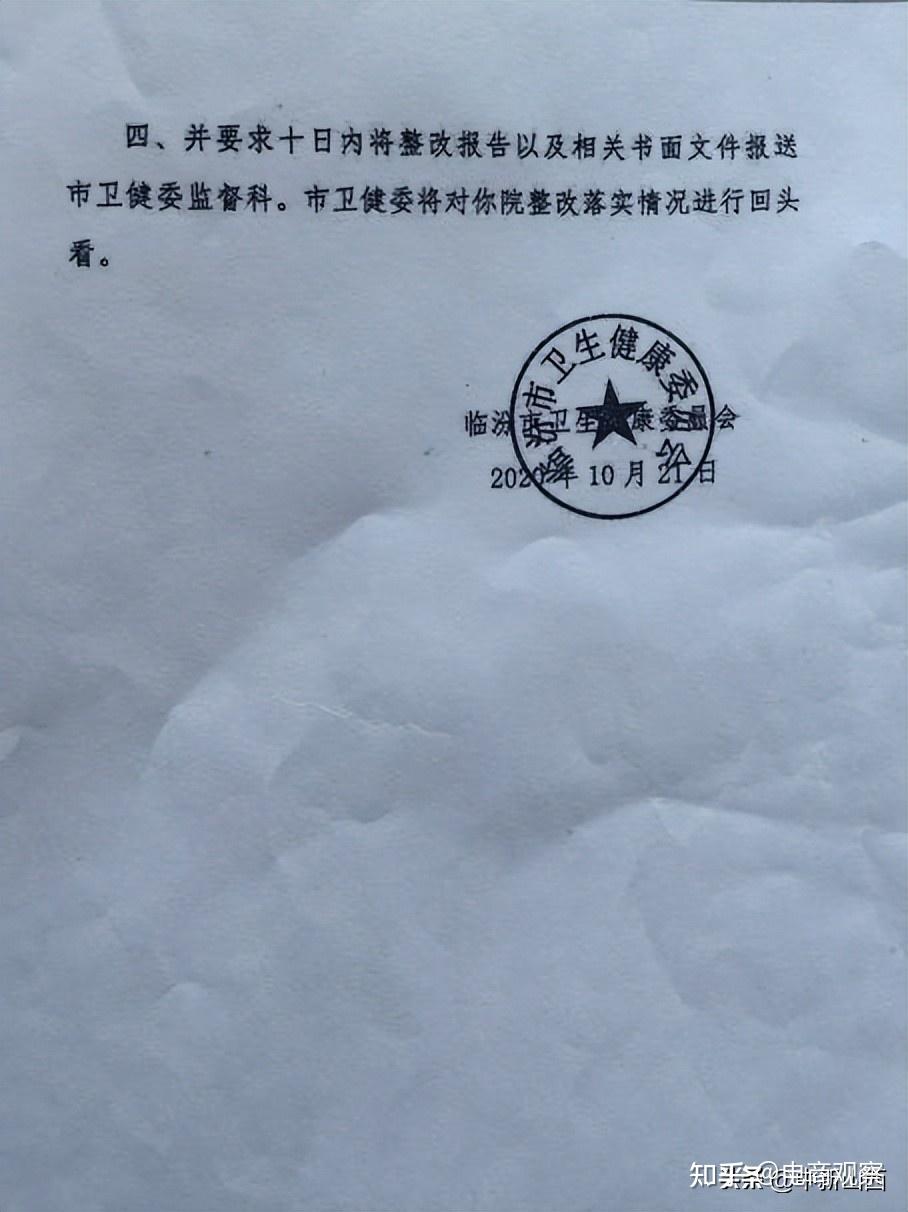 图为临汾市卫生健康委员会下发的限期整改通知