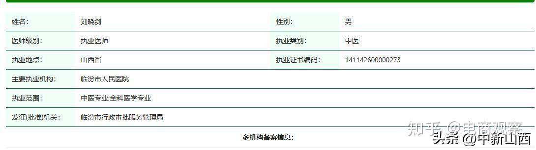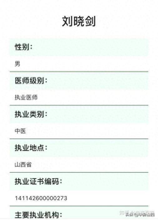 记者登录国家卫生健康委医生执业注册信息查询网核实,刘晓剑的执业类别为“中医”,执业范围为中医专业;全科医学专业。