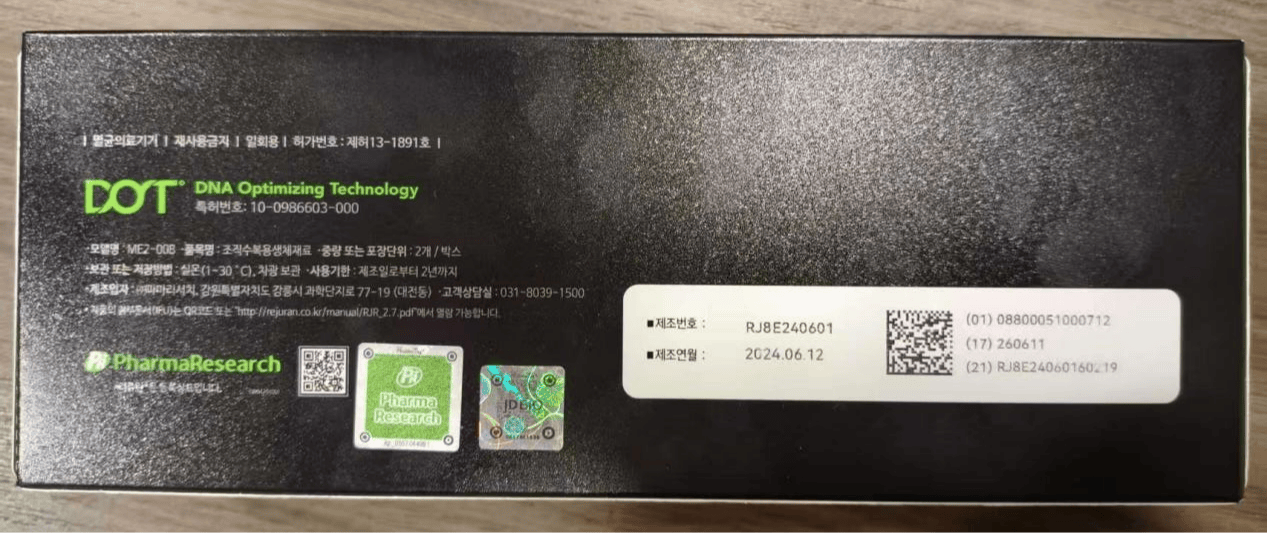 据了解,丽珠兰(REJURAN)是韩国PHARMA RESEARCH集团研发生产的医美品牌,其核心产品以多核苷酸(PN)为主要成分,从三文鱼DNA中提取,专为皮肤修复与抗衰设计,其“小黑盒”因主打抗衰修复功效在医美市场备受追捧。该产品在中国市场有不同版本:获得医疗器械注册证的国产“械字号”版本,以及通过一般贸易进口的“妆字号”版本。而所谓的“人肉背回版”,并未经过中国海关正规报关及药监部门备案,属于未经批准的进口产品,其成分、安全性均无法保障,涉嫌走私。