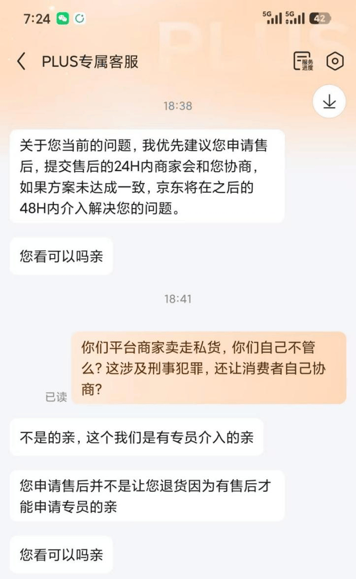 面对消费者的质疑,涉事商家态度敷衍,而作为平台的京东,其处理方式更令消费者心寒。王先生向京东客服投诉后,平台初期仅建议其与商家协商,在消费者告知商家承认“人肉背回”,该产品涉嫌走私后,平台的处理态度才稍有改变。