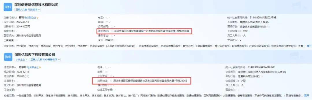 企业预警通显示,凯利盈达信息科技的全资控股股东是深圳信天翁信息技术有限公司,其股东公司的注册地址,与陈宇翔实控的深圳亿品天下科技有限公司完全一致,且二者都是2025年新成立的,前后相隔不过半年。凯利盈达信息科技旗下也有线上商城“凯利盈达”。