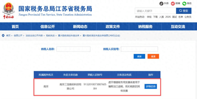近日,南京三宝数码科技有限公司因涉嫌大额虚开增值税专用发票,被列入重大税收违法失信主体。该公司穿透股权,大股东为青岛市直大型国企 —— 青岛海发国有资本投资运营集团,持股 51%,事件引发青岛本地关注。