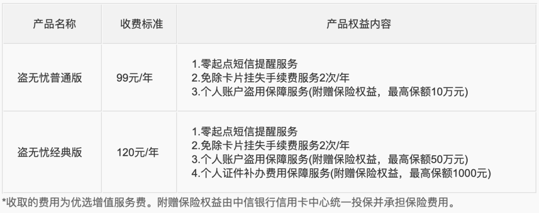 新经济IPO注意到,中信银行信用卡官网披露的增值服务包括:我爱我家、小金领、盗无忧、驾乘宝、安心还、悦悦还、随心用、短信宝、信服卡友等数十款产品(含会员产品、保险产品)。