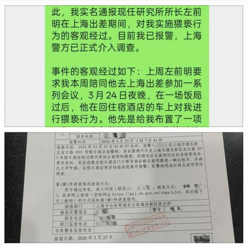 据网传消息,信达证券研究所一名女性员工指控,3月24 日晚,左前明在上海出差期间,在一场饭局过后,在回住宿酒店的车上,对她实施猥亵行为。随后,该员工报警。根据网传报警回执的照片,报警时间为3月25日1时左右。