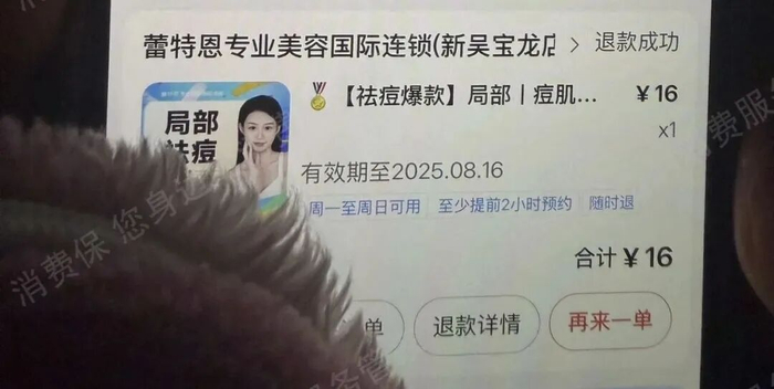 小吴(化名)回忆起去年刚毕业时的经历,依然觉得不可思议。她原本只是在美团团购上刷到蕾特恩祛痘机构“16元体验祛痘清洁”的优惠团购券,想着试试也无妨,没想到这16元最后变成了两万多元的沉重负担。