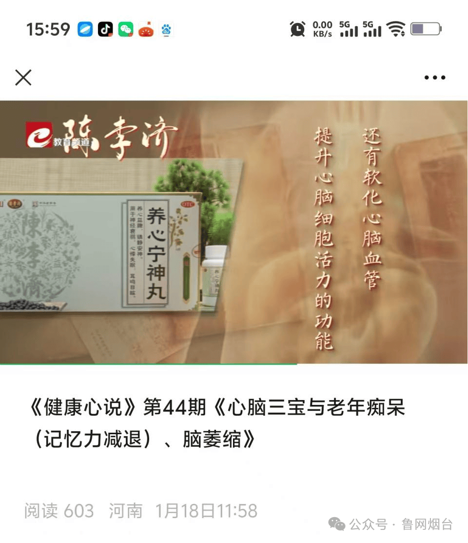 节目里,三种药品被包装成“心脑三宝”,屏幕上赫然打出“软化心脑血管、提升心脑细胞活力”的字样。