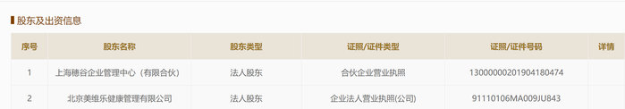 进一步查询上述股东的工商信息,并未发现“央企”直接持股的情况。其中,北京美维乐健康管理有限公司成立于2016年11月15日,法定代表人同为胡雪斐,其股东为上海美维口腔医疗管理集团有限公司(持股85%)和上海穗京企业管理中心(有限合伙)(持股15%)。而上海穗谷企业管理中心(有限合伙)及其合伙人信息中,亦未显示与央企相关。