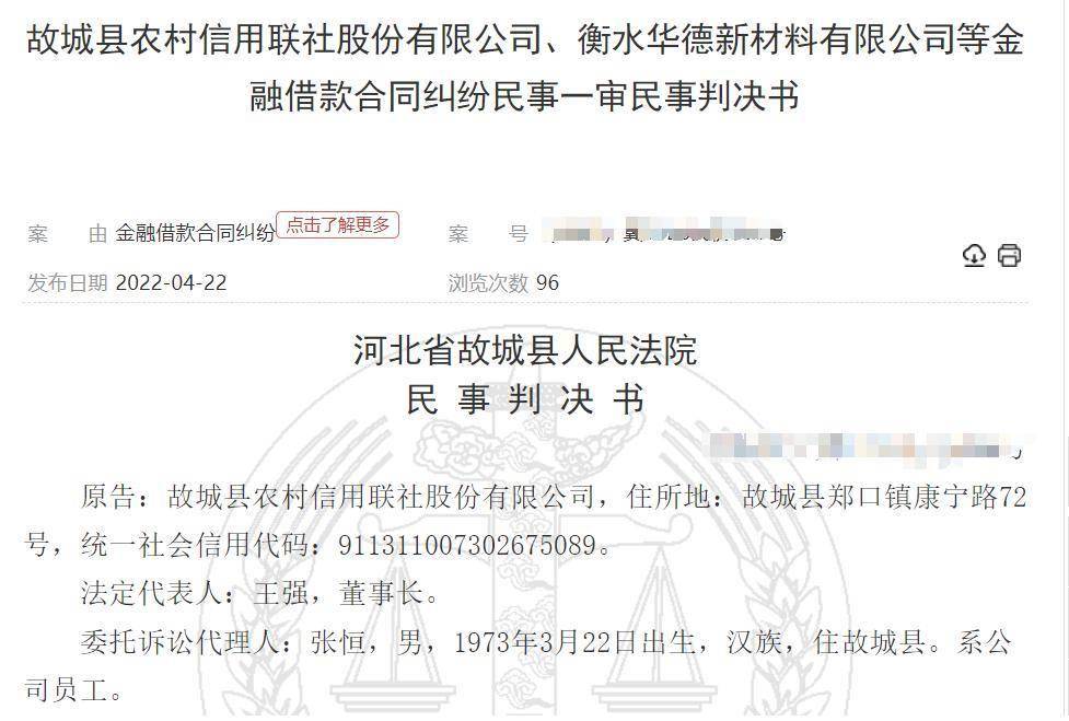 近日,故城县人民法院对故城县农村信用联社股份有限公司(以下简称“故城农信社”)与衡水华德新材料有限公司等借款合同纠纷案作出一审判决。法院判令借款人偿还本金1000万元及欠息149万余元,担保人承担连带清偿责任。案件背后暴露的“借新还旧”操作、破产债权申报缺位等问题,再次将这家地方农信社的信贷合规与股东管理问题推向台前。