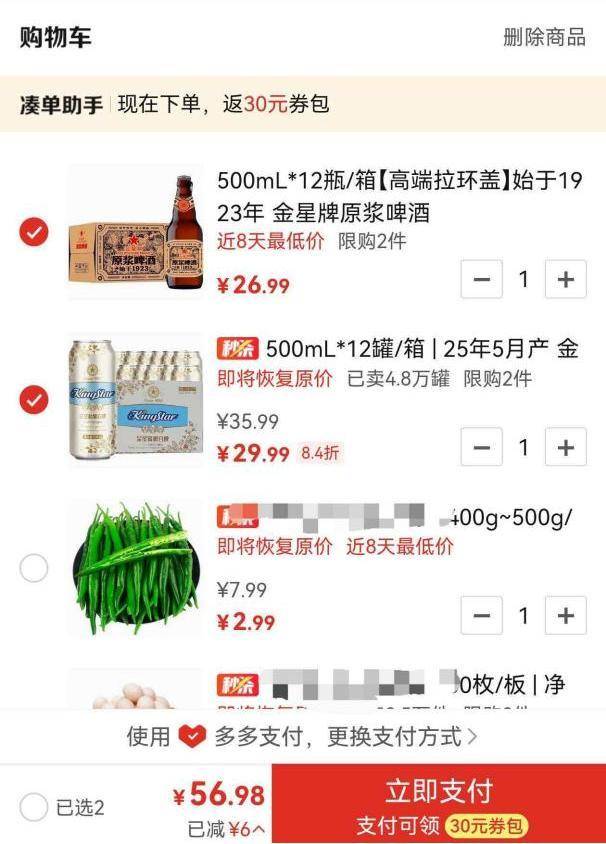 记者随后在电商平台实测发现,上述两款不同来源的“金星”啤酒,仍可在平台上下单购买。