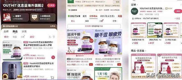 多位明星代言推荐的“澳洲优思益”叶黄素护眼产品,在各大网购平台“海外旗舰店”有售,其中蓝莓叶黄素胶囊售价293元/瓶,黑曜石叶黄素护眼片售价434元/瓶,广州保税仓发货,产地为澳大利亚;天猫榜单进口叶黄素品牌榜排名第一名,叶黄素全系列累计销售400多万瓶,抖音销量229万多瓶。