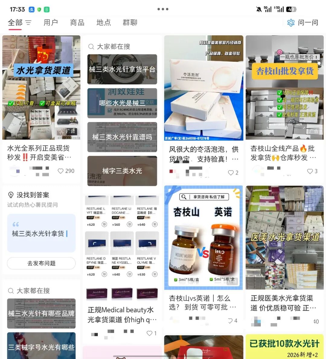 京东淘宝小红书出售械三类含麻水光针 机构倒货还是假货猖獗