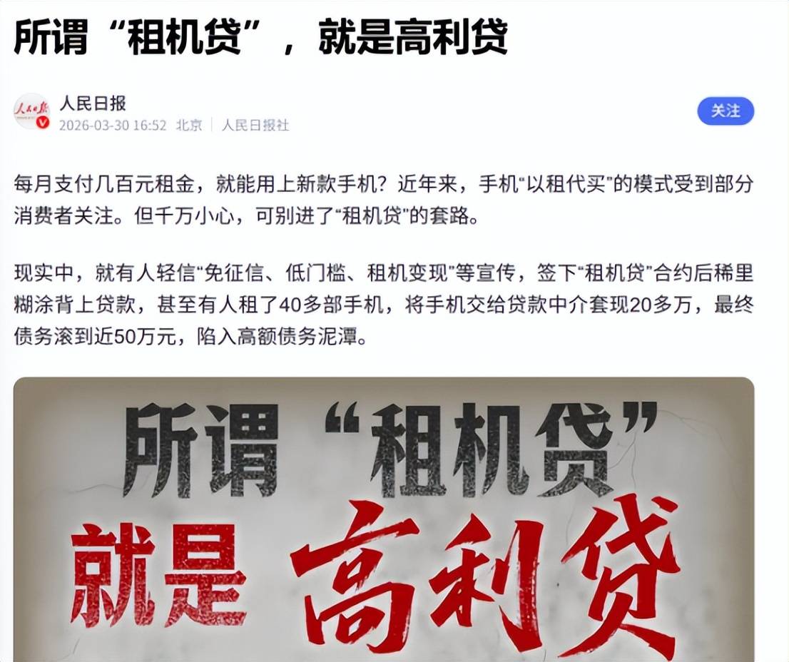 而在隐私问题之外,两家租机平台均频繁被曝出“名为租机实为放贷”。3月30日,人民日报发布《所谓“租机贷”,就是高利贷》的报道,提到种种“假租赁、真坑人”的乱象,侵蚀消费者合法权益,扰乱市场秩序,暴露出平台责任缺位、监管存在盲区、行业自律不足等问题。相关监管部门应加大排查力度,根据新情况,明确租赁与借贷的边界,严厉打击无资质租赁、暴力催收等行为。租赁平台则应及时收起“小算盘”,严守合规底线,完善资质审核,杜绝虚假宣传与霸王条款。