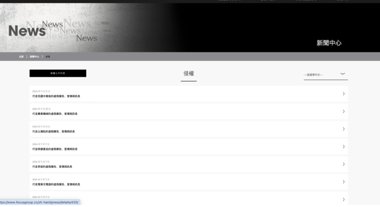 记者查询刘德华公司官网发现,仅2024年一年,官网就发布了超过100条“被代言”澄清公告,涉及汽水、保健品等多类产品,折射出剧照授权侵权问题已不容忽视。