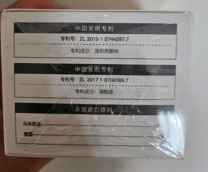 记者观察发现,抹脸油包装盒上有“多国进口原料”字样,但列表上只写了“马来西亚”“德国”,未完整显示对应原料。