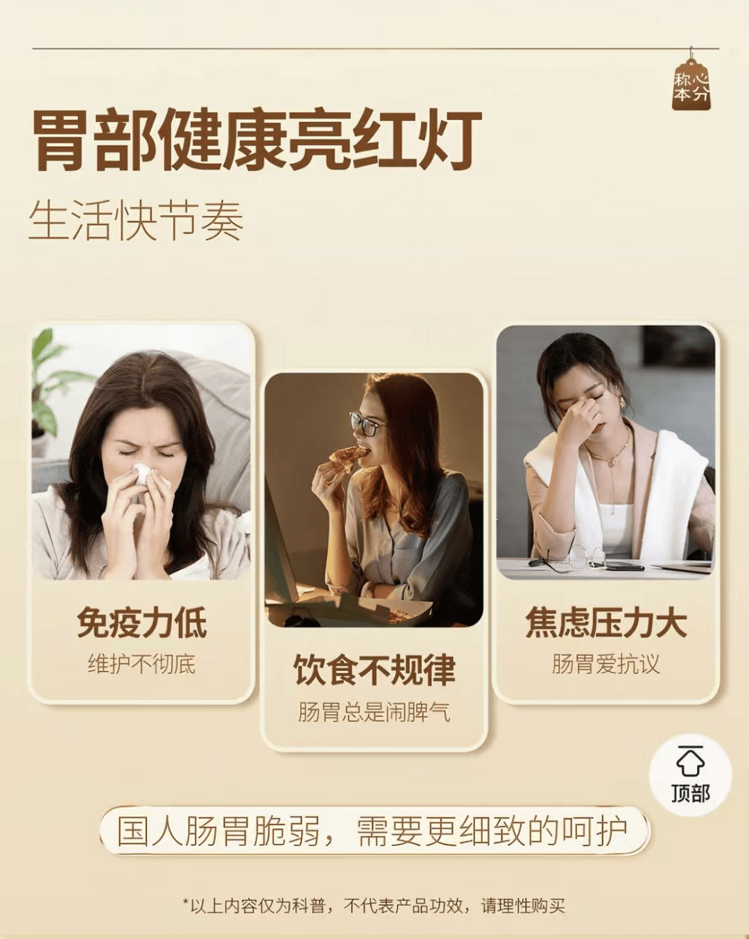 消费者选购时应保持理性:首先看产品资质,无保健食品标志的均为普通食品,对一切功效宣称均需警惕;其次看配料表,药食同源成分排名靠后多为噱头,同时关注糖、油、钠含量;最后树立科学认知,肠胃不适应优先就医,切勿依赖普通食品缓解症状。此外,监管层面也应加强对这类擦边球营销的整治,规范宣传口径,切实保护消费者权益。