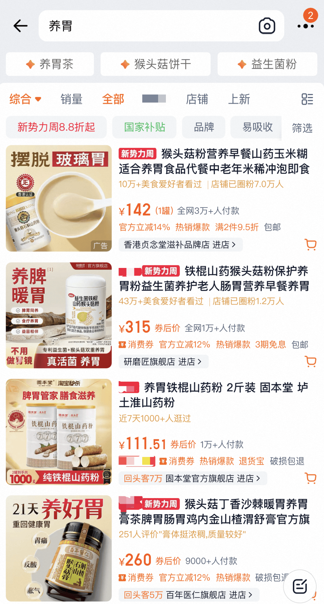因为家族遗传和生活习惯的原因,程序员赵黎(化名)一吃生冷刺激的食物,胃就难受。他在网上搜索各种养胃产品发现,不少相关产品都宣称含有山药粉,并打出“吃出钢铁胃”“终身不胃镜”“摆脱玻璃胃”的营销口号。但当点进这些宣传链接后,实际情况与推荐页面的表述并不一致,有些夸张的表述,仅仅是为了吸引用户点击。