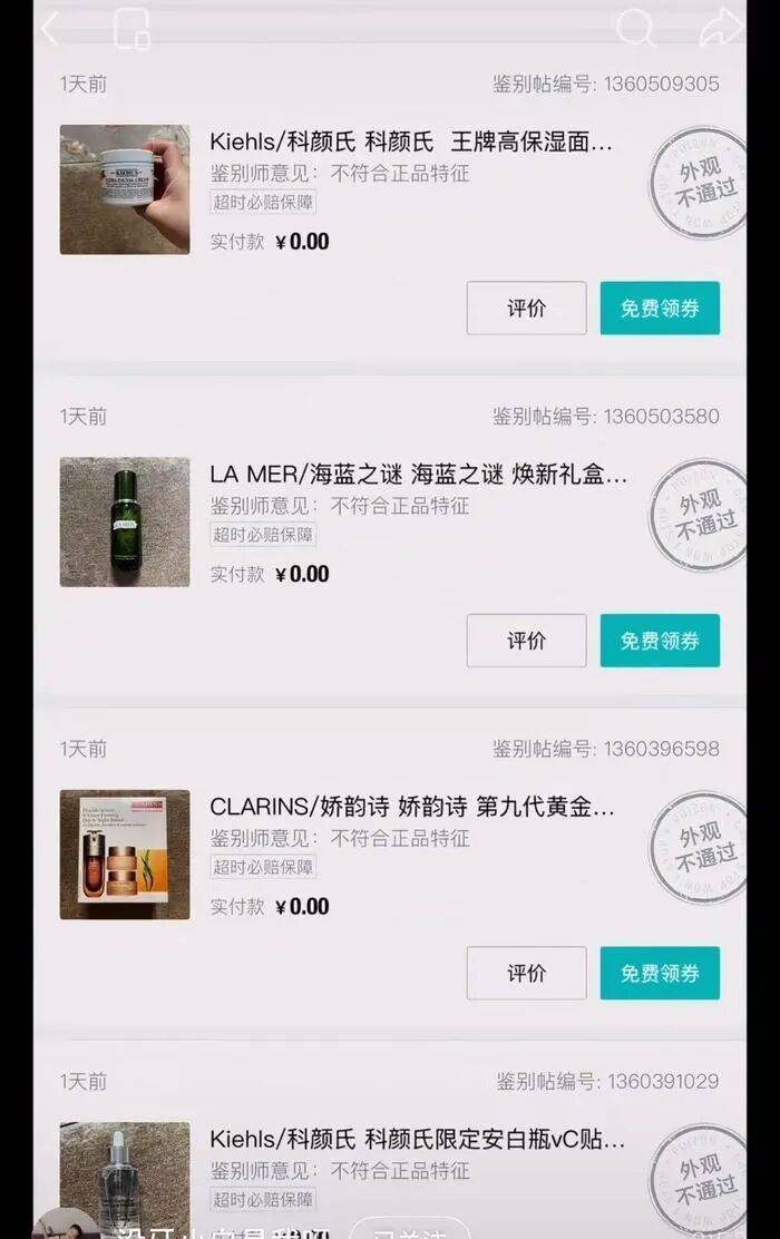 在对自身判断仍存疑的情况下,她将商品细节图上传至第三方鉴定平台得物进行鉴定。鉴定结果显示,相关商品均为“外观非正品”。