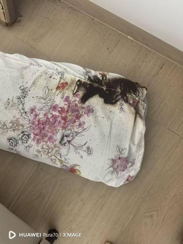 丁先生说:“当时充电宝正在充电,爆炸后,烧了一台价值约2000元的学习机,一件待退货的衣服,床头柜、床、枕头等物品也被烧黑。此外,我手臂也被飞溅的火星灼伤,有多个小红点,背部也有被灼烧的痕迹。”