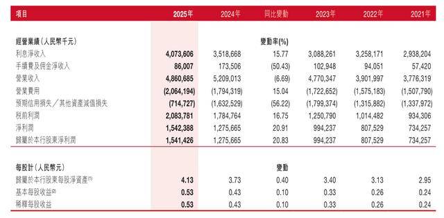 财报显示,2025年,泸州银行2025年实现营业收入48.61亿元,同比下降6.69%;实现净利润15.42亿元,同比增长20.91%。截至2025年末,泸州银行的资产总额为2024.62亿元,同比增长20.2%,不良贷款余额为14.71亿元,较2024年末的12.29亿元增加2.42亿元;不良贷款率为1.18%,同比下降0.01个百分点。
