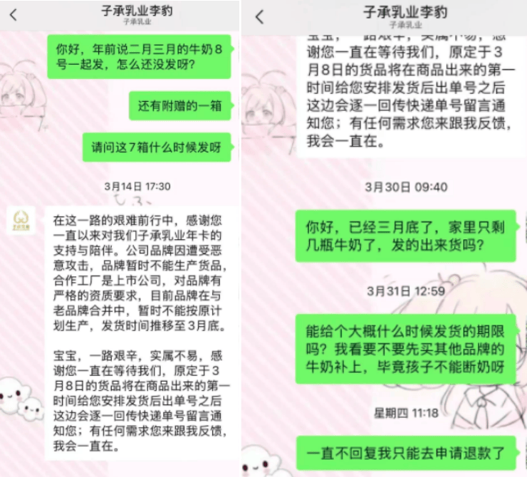 子承乳业被质疑"跑路" 消费者表示:18个月年卡仅发货5个月