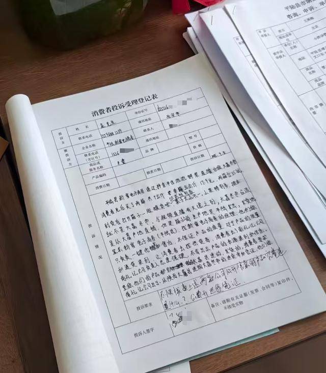 消费者在平陆县市监局填写的登记表(投诉人供图)