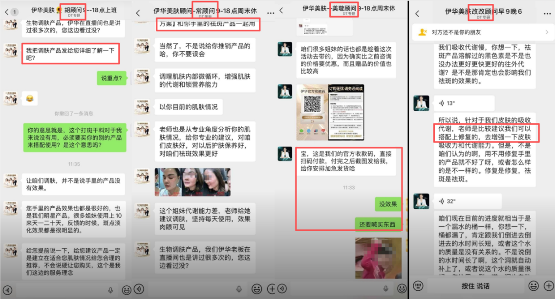 近日,有消费者反映其购买“打斑干料”后,被1对1客服私聊推荐高价产品。打斑干料为伊华直播间销售的“DT美白祛斑冻干粉”,经记者调查发现,该产品存在配套溶液未备案、功效宣称超出注册范围、成分中无祛斑剂等问题,涉嫌违反化妆品监管规定。