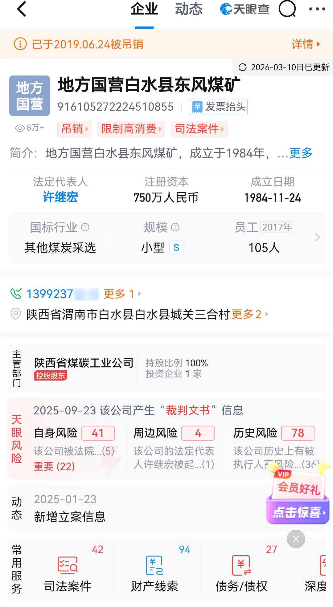 公开资料显示:白水东风煤矿于2019年被吊销执照。不过,此前据说该矿以三四千万元的价格将资源指标卖给榆林一家煤矿,相关土地资源被当地政府收回。