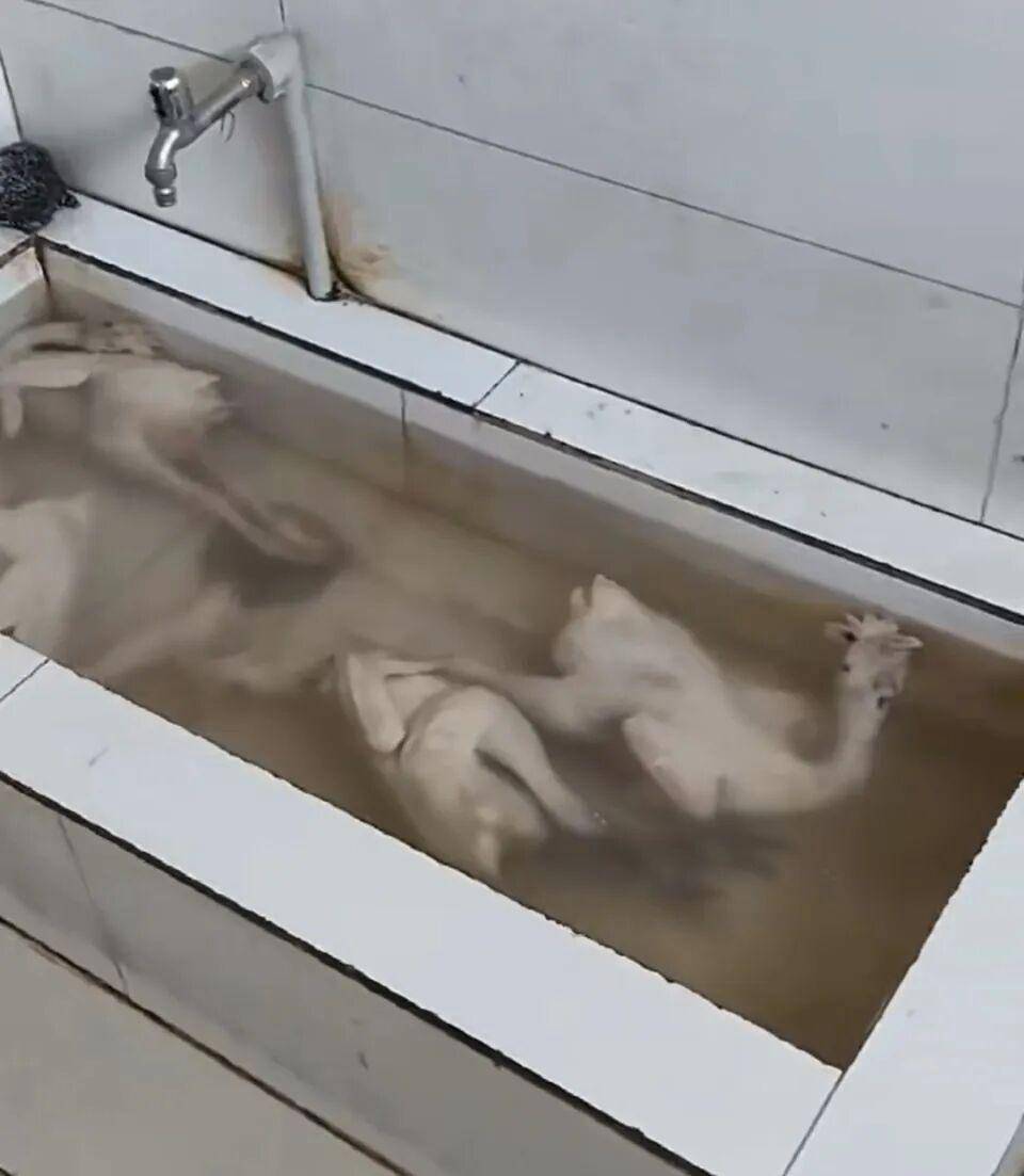 厕所水池中泡4只冷冻鸡,