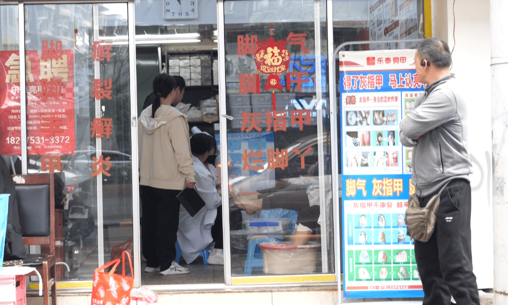 一听会影响健康,成大爷没多想,便开始在店里接受灰指甲修复服务。