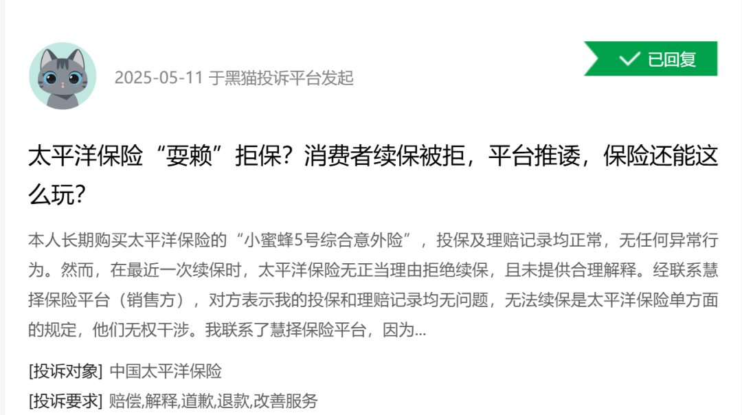 黑猫投诉:客服隐瞒关键信息致拒赔