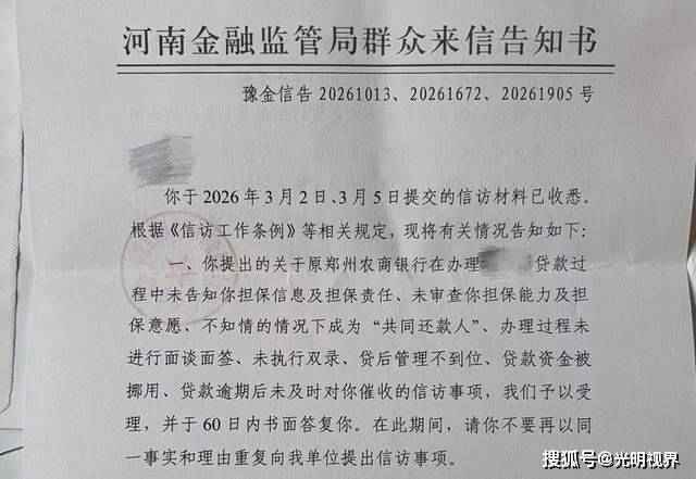 《河南金融监管局群众来信告知书》截图