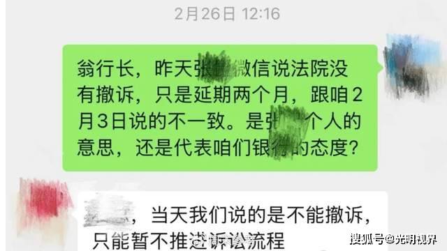 在时仁义的追问下,2月26日,翁行长改口称诉讼“延期两个月”。但对于时仁义提出的“出具书面回复、拿出具体解决方案”的要求,银行始终没有下文。