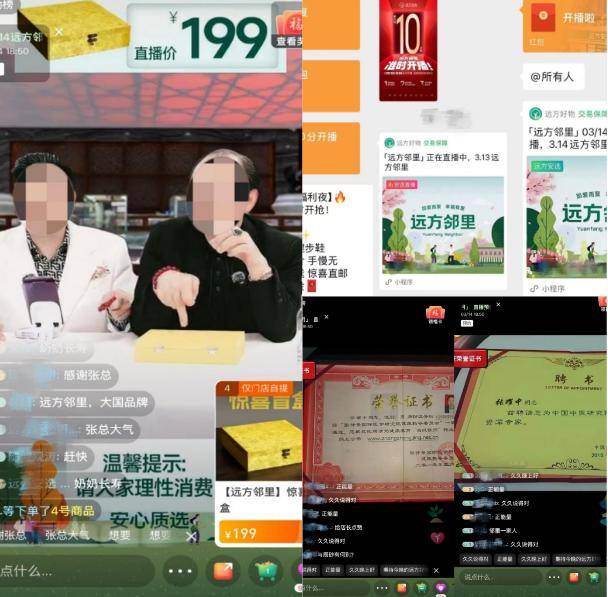 每晚6点50分远方邻里直播间准时开播,各门店微信群提前1小时发红包、推送直播链接引流;直播间推出的 “有矿的张总”(张耀中 / 张要中)身份造假,其提及的耀中朱砂工艺有限公司、嘉世朱砂有限公司以及张仲景国际医学研究院、中国中医研究院均无工商或登记信息,镇平县宝玉石协会石佛寺分会也证实其并非协会理事。