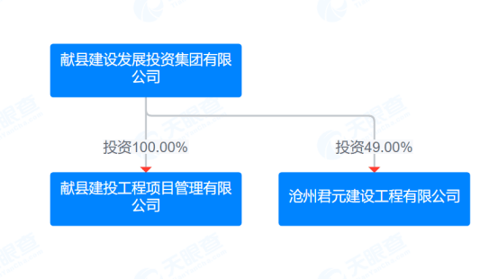 据公开信息披露,沧州君元建设前身为河北腾势新能源科技有限公司,成立于 2024 年 11 月 4 日;2025 年 4 月 3 日,大元建业集团股份有限公司(简称:大元建业)出资 4000 万元入股,企业同步完成更名;更名三个月后,献县建设发展投资集团有限公司(简称:献县建投)出资 1960 万元入股。股权结构最终比例:大元建业持股 51%,献县建投持股 49%。另据国家企业信用信息平台显示,献县建投为献县财政局 100% 全资控股的地方国资平台,同时也是一中迁建项目招标人、代建单位 —— 献县建投工程项目管理有限公司的全资控股股东。