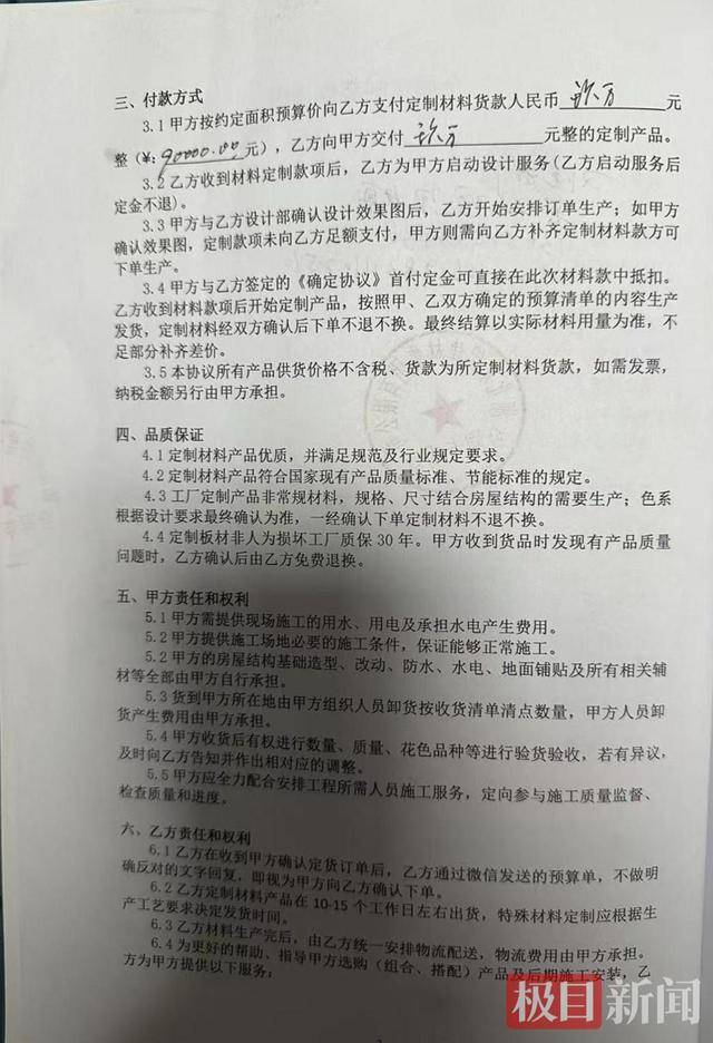 宣传时9万元包整屋装修,签了“走个形式”的合同,对方要求严格按合同来。4月23日,湖北省黄冈市英山县的刘先生告诉极目新闻记者,他遭遇合同欺诈,湖北东铝建材集团有限公司的所谓包整屋装修,仅为其提供了9万元的高价材料,还不包安装、没有配件,在相关部门的调解下,他获得对方退款2万元。