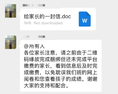 该家长表示, 尽管学校方面说是自愿,可老师一直在群里催促绑定缴费,并称不然就会耽误网上阅卷和查看孩子的成绩。据这位家长透露,他已经打了12345并向省级教育主管部门进行了反映,但目前还没有收到具体的反馈。