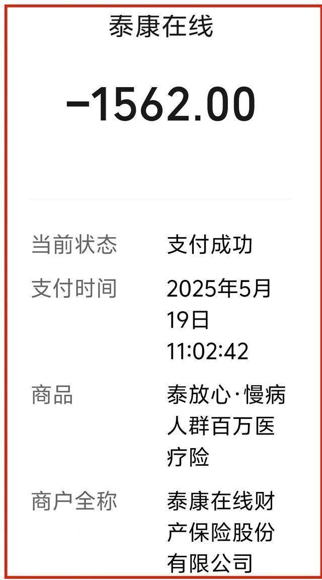 2025年5月,石女士在泰康在线财产保险股份有限公司所属的泰康在线直播间看到“慢性病人群、带病都能投保”的宣传,先花费56.48元拍下一款医疗险,次日经业务员推荐,退掉该产品,投保了1562元/年的“泰放心·慢病人群百万医疗险”,石女士说,她52岁了,就知道自己有脂肪肝、胆固醇偏高的问题,也明确告知了业务员,业务员称不影响投保,保期一年。