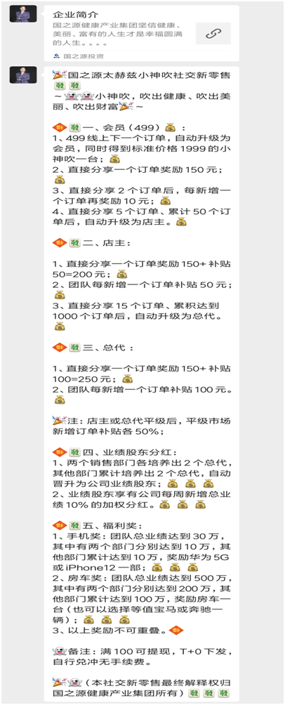 国之源集团:“拉人头”模式销售三无产品“小神吹”