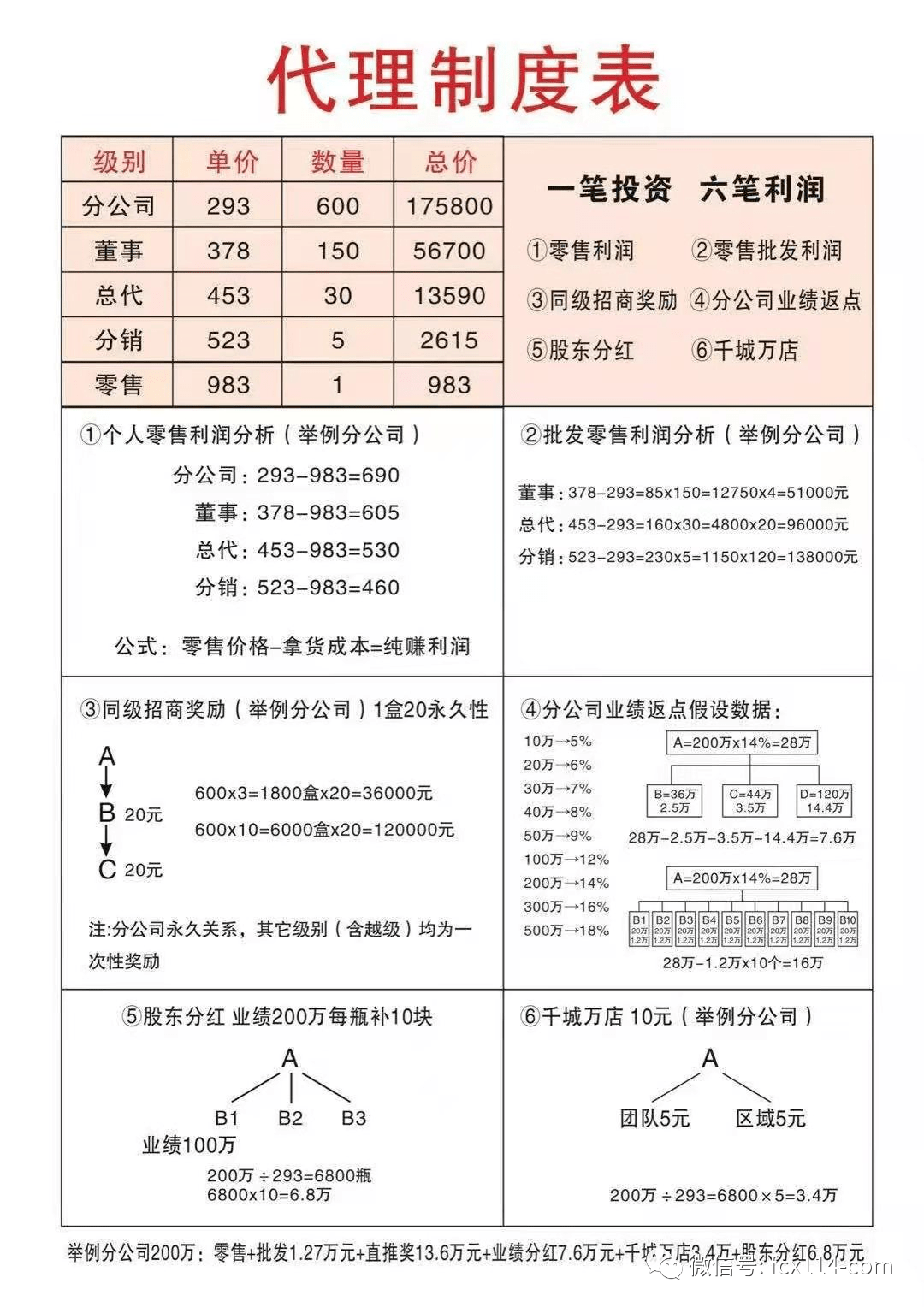 以上2条就是隐含投资越多、级别越高、后边享受的利益越多,就是鼓励下大单,做分公司级别,才不会出现少拿钱的弊端。