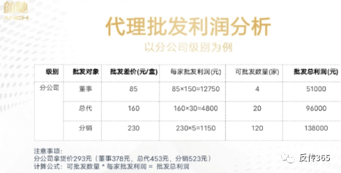 第三步当自己发展到一个分公司代理时,自己可拿直接推荐奖20元/盒,自己推荐的分公司再发展一个分公司级别时,推荐人就拿每盒20元的 直接推荐招商奖励,自己就拿每 盒20元的间接招商 奖励。