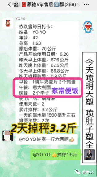 为了印证“颜驰”产品立竿见影的神奇瘦身效果,在“颜驰”售后群和核心群里出现了很多瘦身案例,有口述瘦身经历的、有通过对比使用前后效果图的。。。。