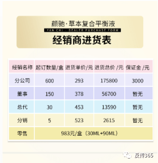 据颜驰资料显示:经销商名称级别分为:零售、分销、总代、董事、分公司、 (通过查找还有比如股东等级别,但未在宣传图片中显示)