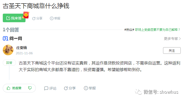 面对古圣天下商城在多地发展会员,且投资金额巨大的情况下,有网友反映家里亲属贷款投资,也有很多网友在网络上求助如何举报,同时也有网友将诸多相关联的公司以及中国安全食品推广办公室发布在网络贴吧上。
