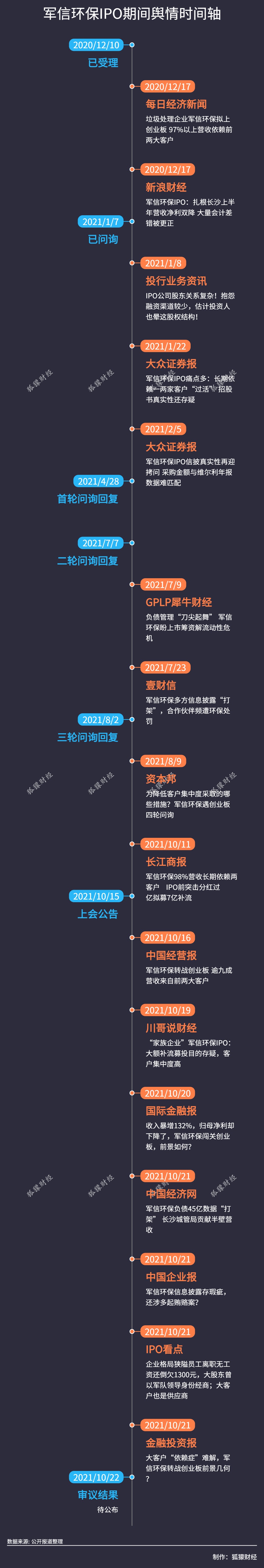 据深交所信息显示,军信环保将于(10月22日)接受创业板上市委审核,保荐机构为中信证券。本次拟公开发行不超过6834万股,拟募资约24.53亿元,将用于长沙市污水处理厂污泥与生活垃圾清洁焚烧协同处置二期工程项目、长沙市城市固体废弃物处理场灰渣填埋场工程项目、湖南军信环保股份有限公司技术研发中心建设项目、补充流动资金。截止10月21日21时,媒体在其IPO期间共发布了16篇敏感报道。