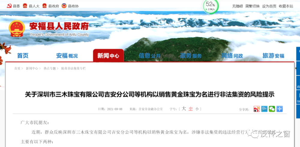 深圳三木珠宝公司吉安分公司进行非法集资的提示