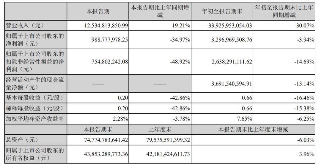 第三季度利润减少超三成