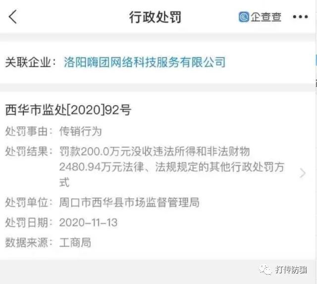 但据部分留存下来的行政处罚决定文书显示,经查,当事人洛阳嗨团网络科技服务有限公司2019年元月开始,利用嗨团团购微信平台等方式,在开展销售活动时采取按照一定顺序组成层级,分级发展,在吸收会员时以购买一定数额的商品作为加入资格;上级对发展的各个下级的营销单数采取分层返利、团队计酬的方式运营,激励发展下线,目前已达到3级16层,销售商品上千种,人员达255592人次,涉及29个省市。