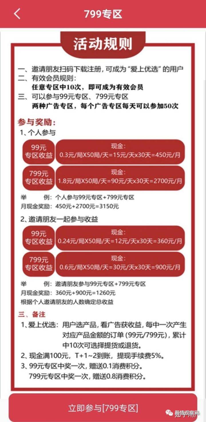 关于华夏老年网的拼团,据某代理商还在微信公众号写道,个人参与:99元专区收益,0.3元/局*50局/天=15元/天;799元专区收益:1.8元/局*50局/天=90元/天,个人参与一天:15元+90元=105元,105元*30天=3150元一个月的收益。